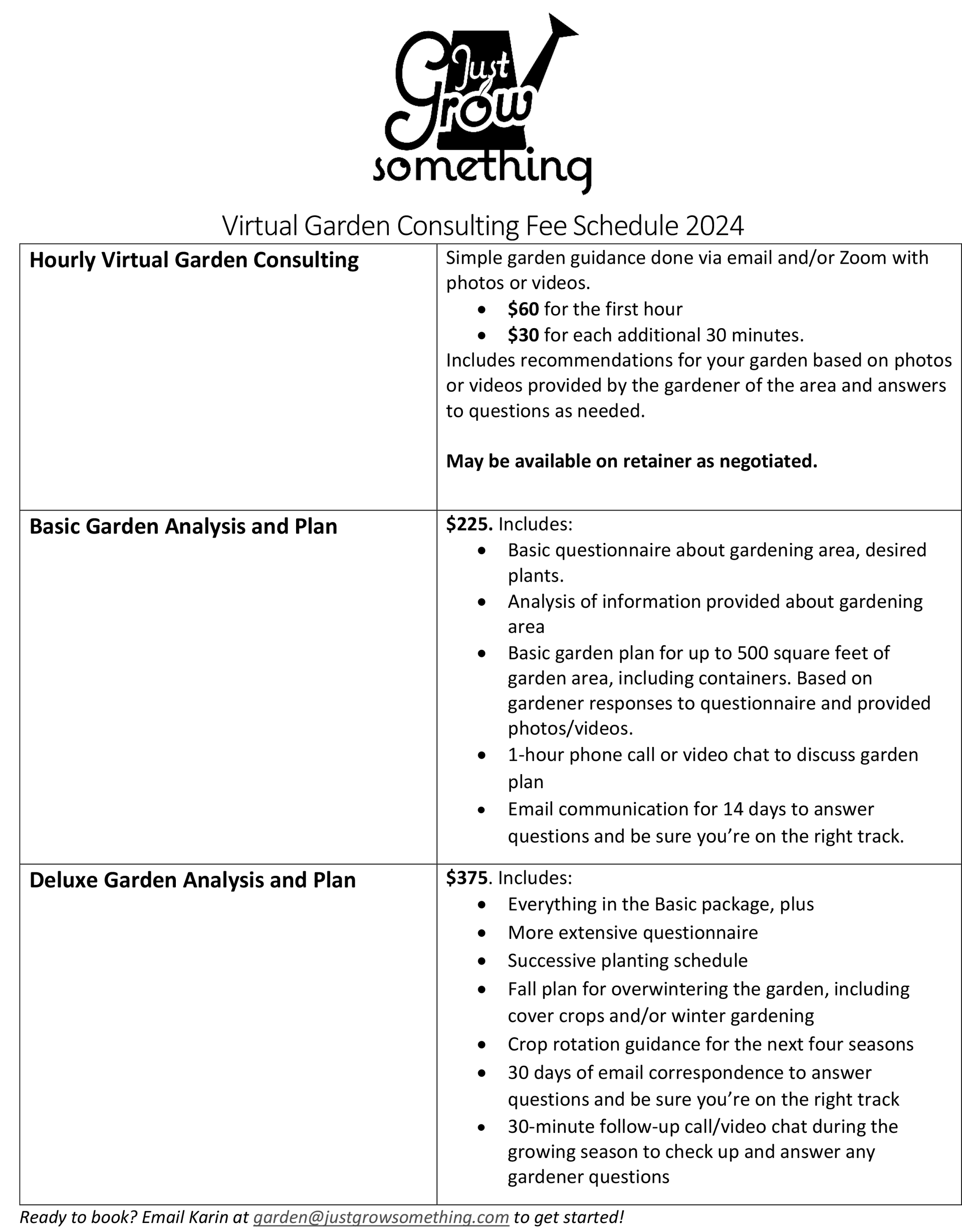 If you are local to the Kansas City metro area, I do onsite consulting for any size gardening space.